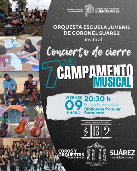 Cultura HOY La Orquesta Escuela vive su séptimo campamento musical: convivencia, música y naturaleza 03/01/2026 DJ Lucas del Valle: “Soy un buscador de oportunidades” 22/12/2025 “Este lunes como cada año los esperamos en el cierre de El Taller de Calle Brown 15/12/2025 • Un cuento con final inesperado para emocionarse en la voz de Evelyn Morris AYER La Agrupación Folklórica “La Tranca” se presentará en la Fiesta de la Cebada Cervecera en Puan 03/01/2026 Escuela de Verano 2026: Escuela Municipal de Música de Coronel Suárez 20/12/2025 Cierre del año en El Taller de Calle Brown 11/12/2025 • Concierto de Fin de Año de la Orquesta Escuela de Coronel Suárez 07/01/2026 Este viernes 9 de enero se presenta la Orquesta Escuela de Coronel Suárez en la Biblioteca Popular Sarmiento. Concierto de cierre del 7° Campamento Musical 24/12/2025 Gran cierre del Taller de Calle Brown 15/12/2025 Se presentó en el Mercado de las Artes el libro “El secreto de los jacintos”, de Olga Pérez del Bello 11/12/2025 Olga Pérez del Bello presenta su libro “El secreto de los jacintos” este viernes 12 de diciembre a las 20 en la Sala Bicentenario Cargando...
