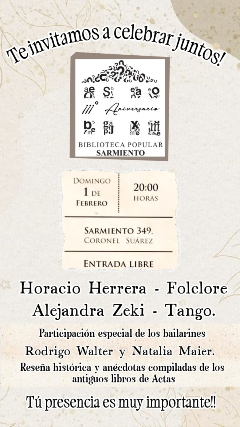 Cultura AYER Biblioteca Sarmiento: un emotivo homenaje a un grande de Coronel Suárez, Sergio Denis vive en nosotros 22/01/2026 Familia Techno apuesta al formato aire libre y prepara una gran fiesta electrónica bajo las estrellas 12/01/2026 • La Escuela Municipal de Música presenta su Escuela de Verano 2026 07/01/2026 Este viernes 9 de enero se presenta la Orquesta Escuela de Coronel Suárez en la Biblioteca Popular Sarmiento. Concierto de cierre del 7° Campamento Musical 27/01/2026 La Biblioteca Sarmiento invita a celebrar juntos su 111º aniversario 16/01/2026 Con mucho público, La Tranca se consolida como espacio cultural en Cura Malal y la región 09/01/2026 La Orquesta Escuela vive su séptimo campamento musical: convivencia, música y naturaleza 03/01/2026 DJ Lucas del Valle: “Soy un buscador de oportunidades” 23/01/2026 Hoy 23 de enero Día del Músico en Argentina 12/01/2026 Un encuentro que deja huella: Concierto del 7° Campamento de la Orquesta Escuela 08/01/2026 La Agrupación Folklórica “La Tranca” se presentará en la Fiesta de la Cebada Cervecera en Puan 03/01/2026 Escuela de Verano 2026: Escuela Municipal de Música de Coronel Suárez Cargando...