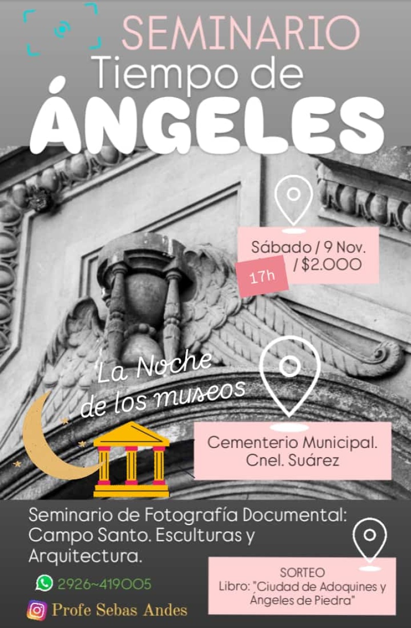 Dicho seminario teórico-práctico finalizará con el sorteo de un ejemplar de "Ciudad de adoquines y ángeles de piedra", el último libro artístico del fotógrafo coordinador, que cuenta entre sus páginas con postales del cementerio local, considerado a nivel regional como un verdadero museo o galería de arte a cielo abierto.