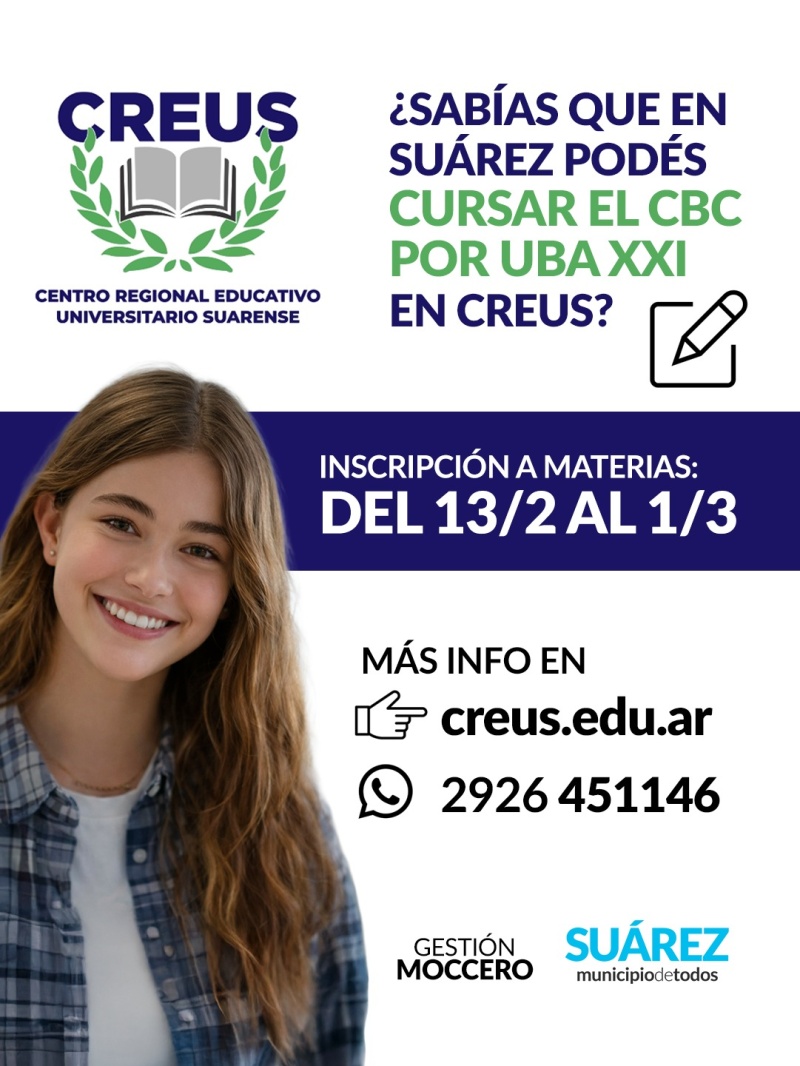 ¿Sabías que en Coronel Suárez podés cursar el CBC por UBA XXI en CREUS?