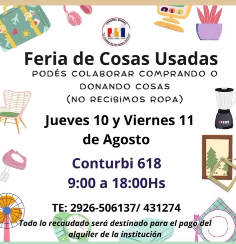 Jueves 10 y viernes 11 de agosto en av. Conturbi 618, de 9 a 18 hs.