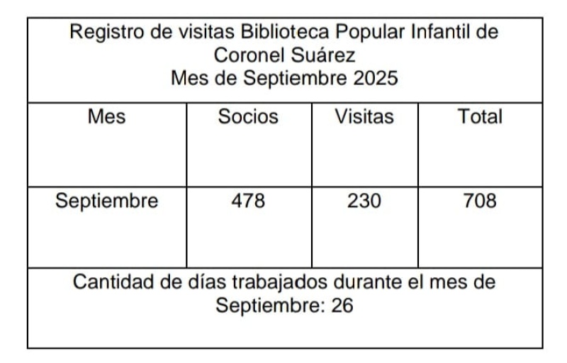 La Comisión Directiva y personal de la Biblioteca Popular Infantil de Coronel Suárez informan