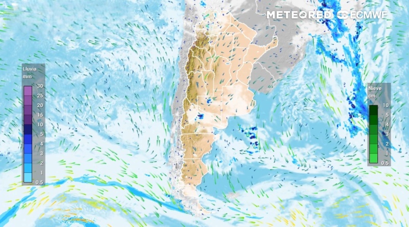 Este núcleo de inestabilidad se desplazará de oeste a este, perdiendo intensidad a medida que avance. Las provincias que podrían verse afectadas por este cambio serán Mendoza, San Luis, Córdoba, sectores de La Pampa y Santiago del Estero, conformando el eje más activo de la próxima semana.