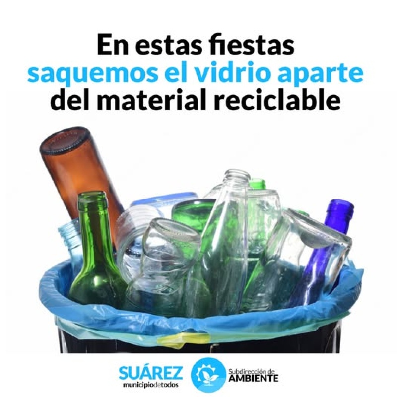 Durante los festejos de Navidad y Año Nuevo se suele juntar mayor cantidad de residuos de vidrio, por tal motivo, los operarios de la cooperativa “Hagamos Más”, responsables de la recolección diferenciada de residuos, solicitan a la población la colaboración para colocar los vidrios en cajas de cartón o bolsas verdes separados de los demás residuos reciclables, como forma de protegerlos ante posibles accidentes, más allá de su protección personal.