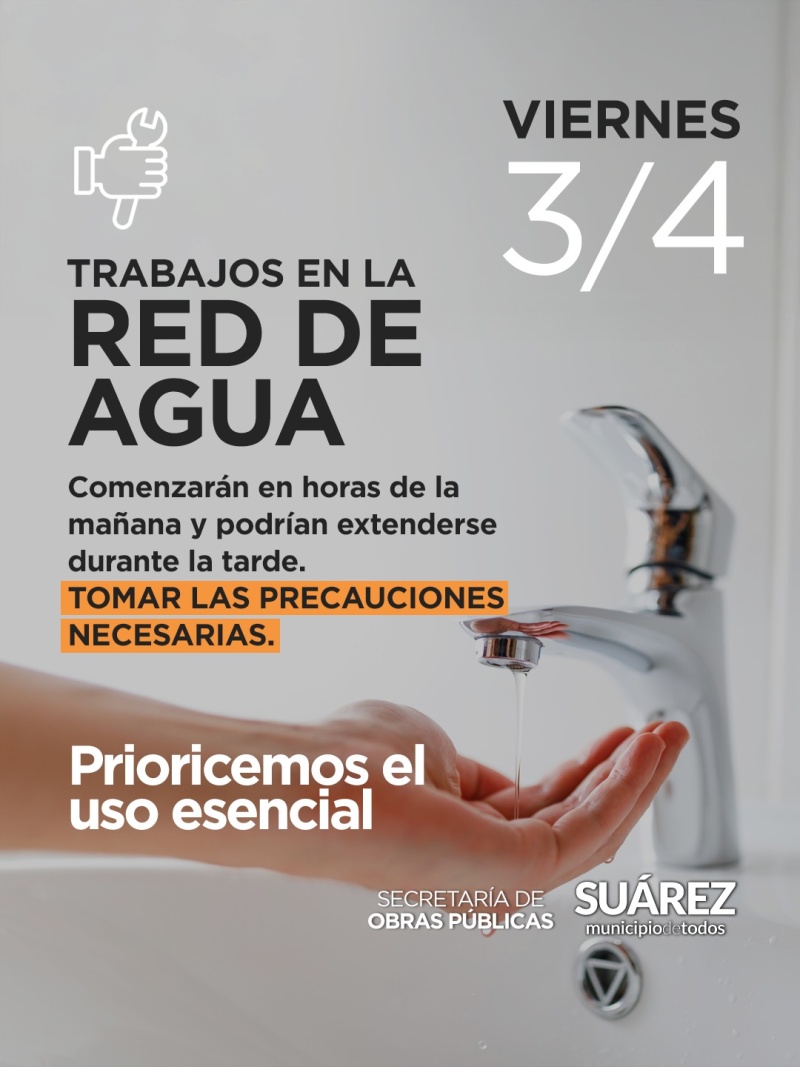 Intervención en la red de agua potable: mientras se realizan los trabajos, prioricemos el uso esencial