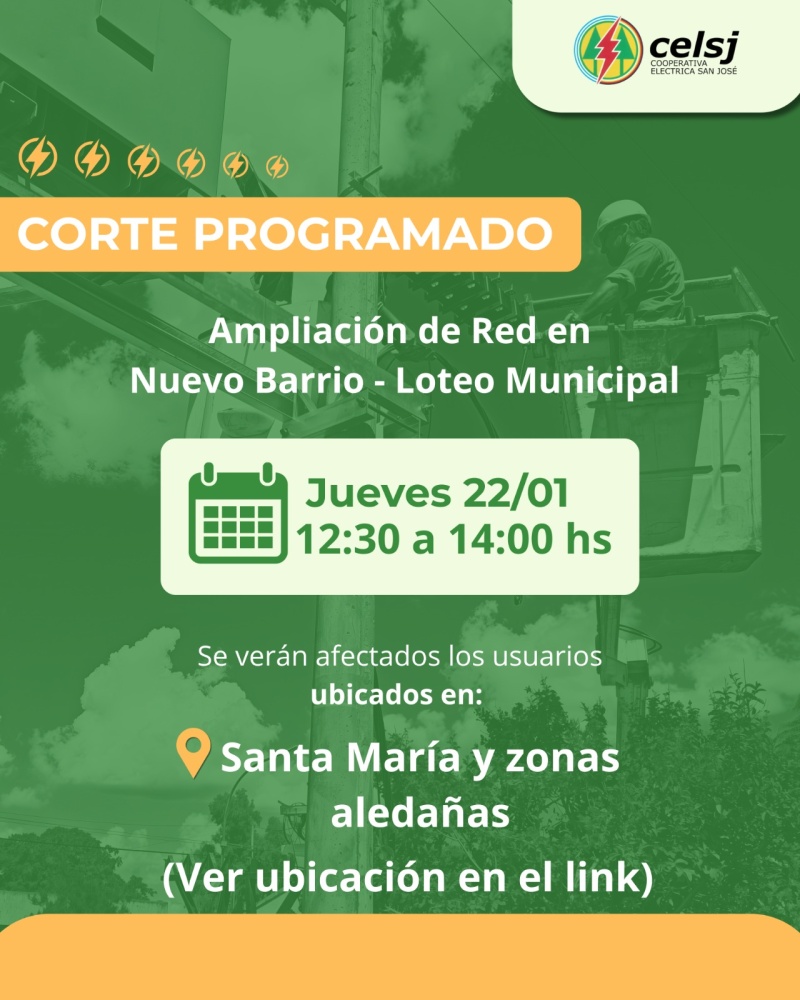 La Cooperativa Eléctrica San José anuncia un corte para este jueves