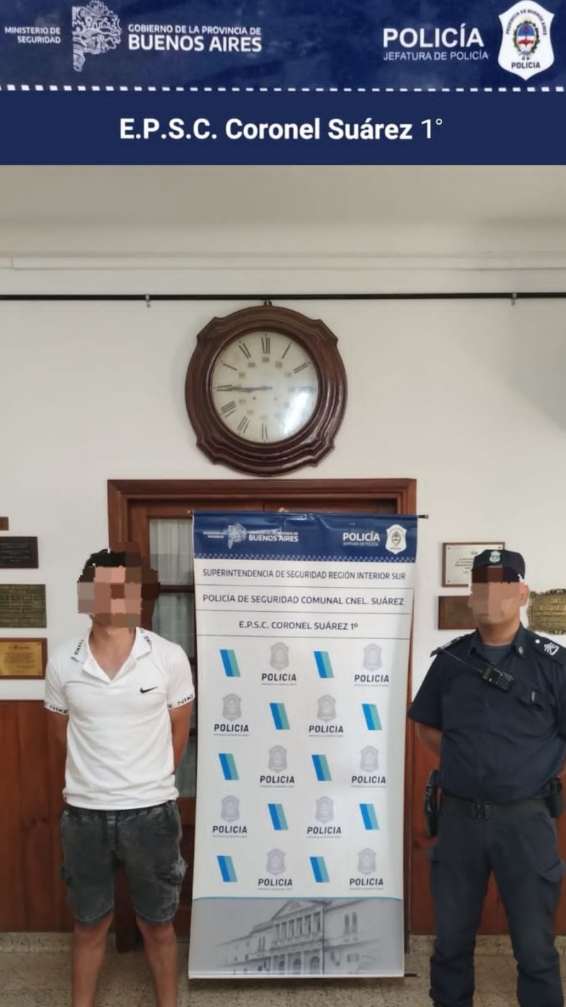 La Jefatura de Policía de Seguridad Comunal de Coronel Suárez informa que, con fecha 19 de enero de 2026, siendo aproximadamente las 19:00 horas, personal policial que se encontraba en el asiento de la Seccional Primera procedió a hacer efectiva una orden de detención.