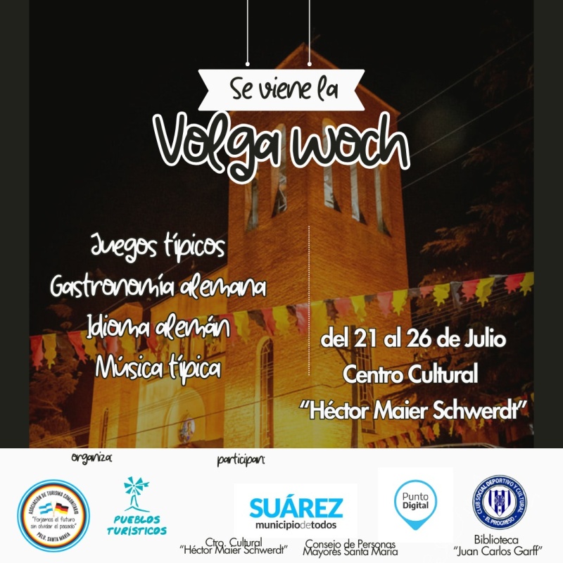 Todas estas instituciones llevarán adelante esta propuesta denominada Volga Woch, entre el 21 y el 26 de julio, con diferentes propuestas que celebrarán la cultura, tradiciones, gastronomía y el idioma alemán que sobrevivieron a todo este trayecto entre la madre patria alemana, pasando por Rusia, hasta llegar a su tierra de adopción, Argentina.