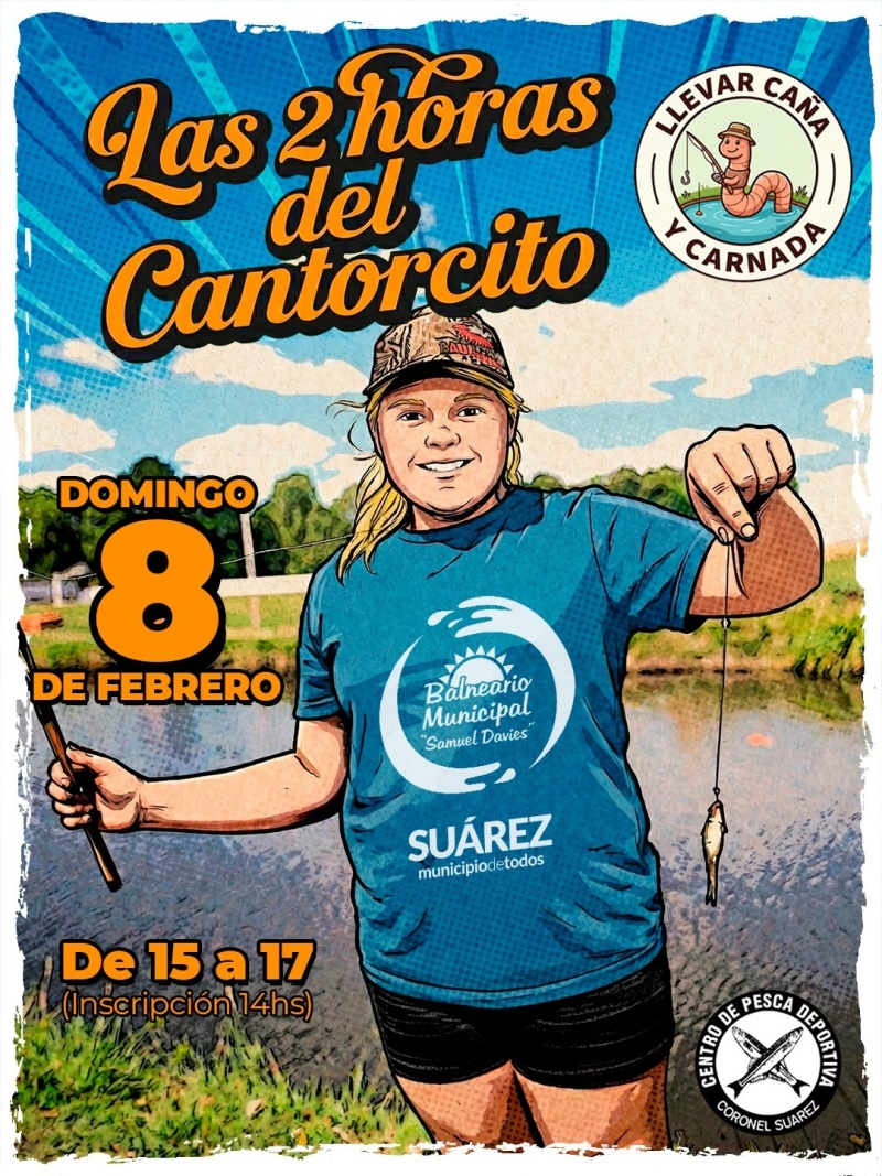 Organizado por la Dirección de Deportes y el Centro de Pesca Deportiva de Coronel Suárez, el domingo 8 de febrero se realizará el tradicional encuentro de pesca infantil denominado “Las dos horas del cantorcito”, cuyo objetivo es sumar a los más pequeños de la comunidad en esta divertida modalidad deportiva.