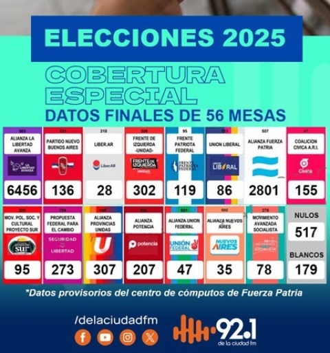Region AYER ¡Vuelve la Fiesta del Pan a Carhué! El pan como símbolo de identidad, tradición y encuentro 01/11/2025 Un incendio destruyó la capilla de Pehuen Co 28/10/2025 Vecinos de Huanguelén reclaman una intervención urgente por la situación hídrica y piden la presencia de Hidráulica provincial 25/10/2025 Vecinos y productores de Huanguelén presentaron un reclamo urgente por la crítica situación hídrica y el deterioro de los caminos 05/11/2025 Huanguelén enfrenta anegamientos y caminos intransitables tras las intensas lluvias 31/10/2025 En un trágico accidente de camiones en Ruta 65 murió el suarense Alberto Melera 28/10/2025 Fiesta Nacional de la Cebada Cervecera 2026: con una grilla de lujo y cuatro días de celebración en Puan 23/10/2025 La Ventura celebra 65 años con un gran almuerzo y un homenaje al primer campeonato de fútbol 03/11/2025 Granizo del Tamaño de un Huevo Azotó Huanguelén en un Fuerte Temporal esta tarde 28/10/2025 • Tensa reunión en Huanguelén por el estado de las calles 27/10/2025 Amplio respaldo a La Libertad Avanza en la región con resultados parejos en Laprida y contundentes en el resto de los distritos 22/10/2025 Una granizada sorprendió a los bahienses Cargando...