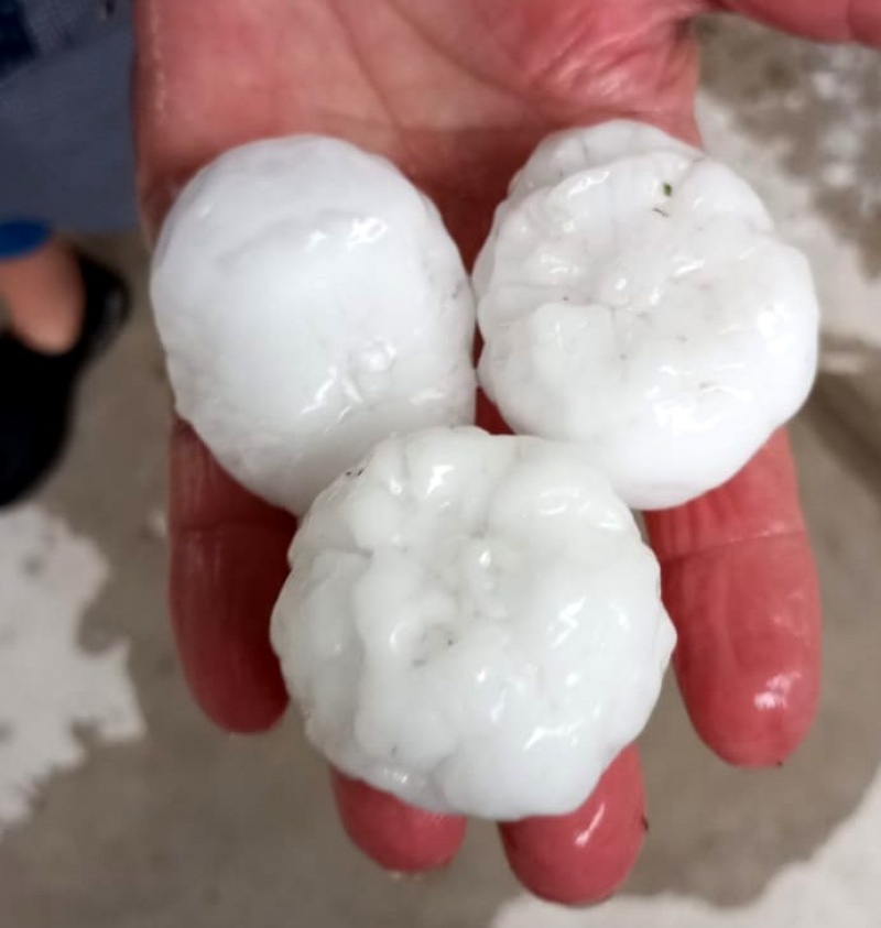 Una tormenta de granizo, con piedras del tamaño de un huevo, sorprendió y causó importantes destrozos en la localidad de Huanguelén durante la tarde de hoy. El fenómeno meteorológico, que se desató repentinamente, estuvo acompañado de abundante precipitación. Vecinos reportaron la inusual magnitud del granizo, cuyas dimensiones superaban en muchos casos las de una pelota de golf.