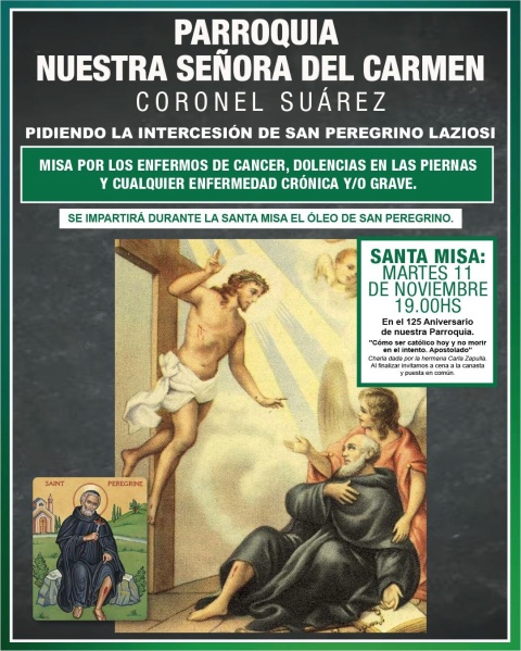 Religion 05/12/2025 “Querida comunidad, una vez más nos unimos en oración comunitaria con el Rezo del Santo Rosario Callejero en Huanguelén y Coronel Suárez” 21/11/2025 La Capilla Nuestra Señora de la Merced avanza con la obra de acceso y agradece el apoyo de la comunidad 11/11/2025 Misa en la Parroquia Nuestra Señora del Carmen, pidiendo la intercesión de San Peregrino Laziosi 31/10/2025 Conmemoración y Día de los Fieles Difuntos: avisos parroquiales en los tres pueblos alemanes 03/12/2025 Misa en la Parroquia Nuestra Señora del Carmen, pidiendo la intercesión de San Peregrino Laziosi 20/11/2025 Arquidiócesis de Bahía Blanca: campaña de sostenimiento para la formación de los seminaristas 09/11/2025 • Procesión y santa misa por los 125 años de la Parroquia Nuestra Señora del Carmen 31/10/2025 Legión de María invita al rezo del Santo Rosario Callejero este sábado a las 15 hs. en la Gruta de la Virgen Dolorosa 28/11/2025 Bendición de las Coronas de Adviento este domingo 30 en la misa de 11 hs en la Parroquia San José Obrero 14/11/2025 Una charla para el alma: el padre Roberto Buckle habló sobre la crisis espiritual y emocional en jóvenes y adultos 06/11/2025 • La Parroquia Nuestra Señora del Carmen celebra 125 años de vida comunitaria 28/10/2025 • 1900 - 8 de noviembre – 2025, 125º aniversario de la Parroquia Nuestra Señora del Carmen: Programa de Cultos Cargando...