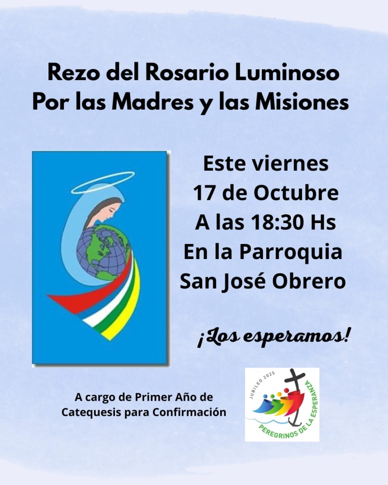 Rosario Luminoso Misionero este viernes 17 a las 18:30 hs. en la Parroquia San José Obrero