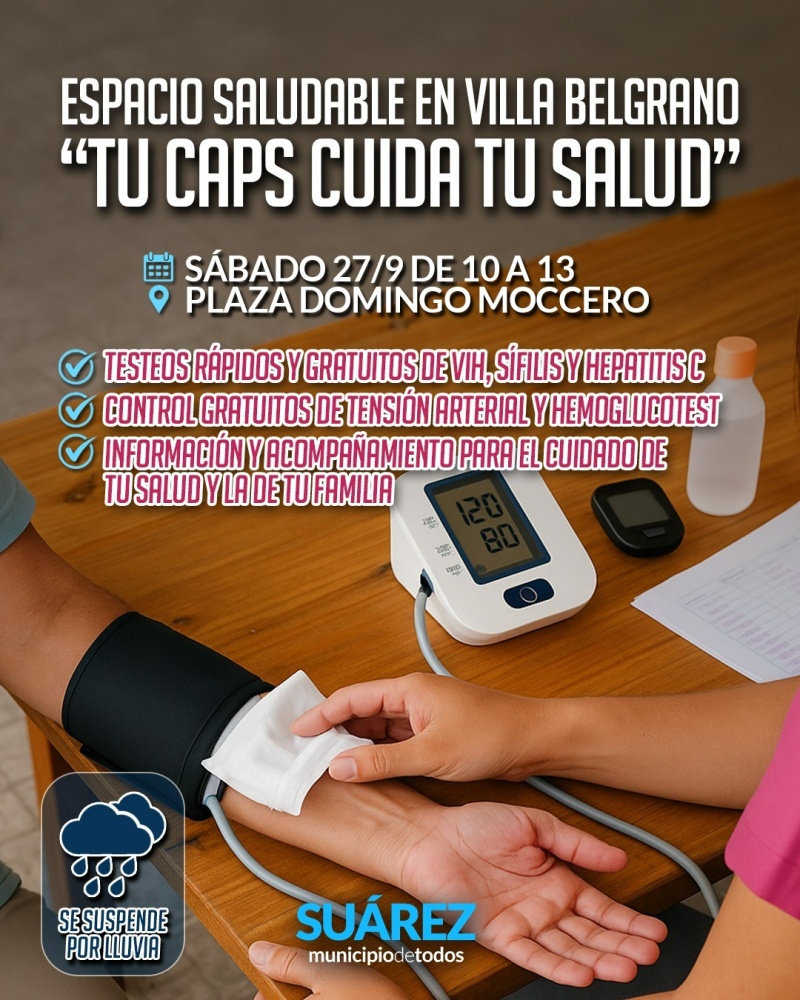 Mañana sábado 27 de septiembre, de 10 a 13 horas, acércate a la Plaza Domingo Nicolás Moccero de Villa Belgrano y participá de una jornada de promoción de la salud y prevención de enfermedades.