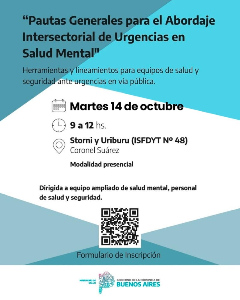 Los invitamos a participar de la jornada: “Pautas Generales para el Abordaje Intersectorial de Urgencias en Salud Mental”, herramientas y lineamientos para equipos de salud y seguridad ante urgencias en la vía pública.