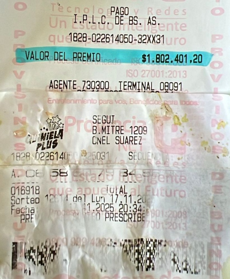 Casa Segui: Gracias a la publicación en la Nueva Radio, el apostador y ganador encontró en los residuos el ticket que había tirado de Quiniela Plus