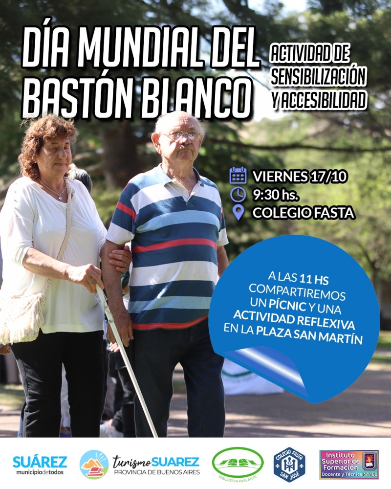En el marco del Día Mundial del Bastón Blanco (15 de octubre), este viernes 17 a las 9.30 hs. se realizará una actividad inclusiva y participativa con el objetivo de promover la concientización sobre la accesibilidad y la autonomía de las personas con discapacidad visual.