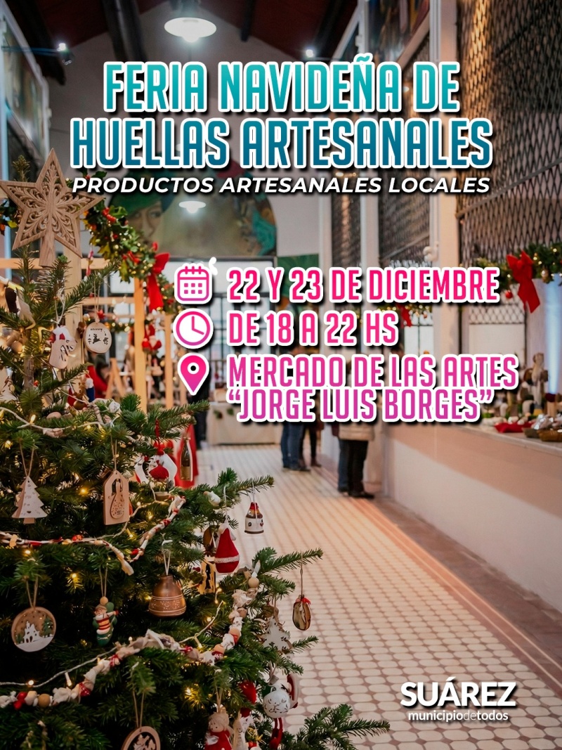 Los días 22 y 23 de diciembre, de 18 a 22 horas, el Mercado de las Artes “Jorge Luis Borges” se convertirá en un espacio ideal para encontrar productos artesanales locales, realizados con dedicación y talento por emprendedores de nuestra comunidad.