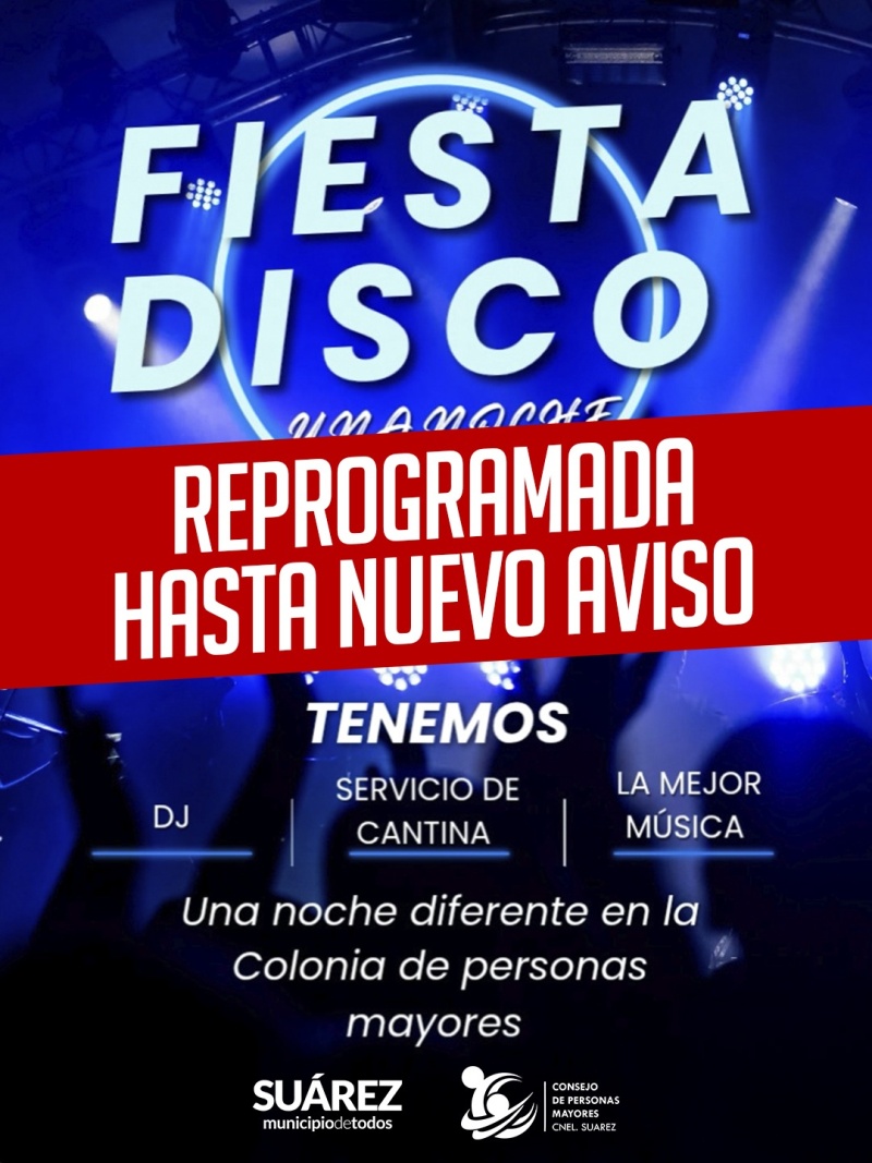 07/01/2026 • SOCIEDADFiesta Disco para Personas Mayores: Suspendida hasta nuevo aviso Si te parece interesante compartilo con tus amigos