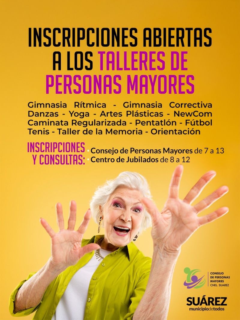 El Consejo de Personas Mayores de la Municipalidad de Coronel Suárez invita a las personas mayores del distrito a sumarse a los talleres que se brindarán durante este 2026: